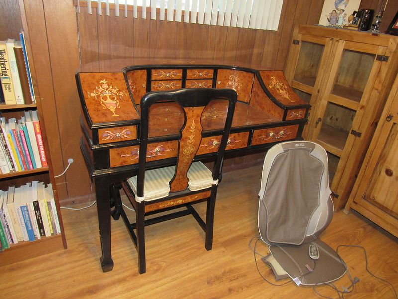 Queen size futon, coffee table, 2 leather chairs with ottomans, drop leaf table, sea shells, pottery, dresser and mirror, nightstand, wall mirror, paintings, TV stand, 2018 Samsung TV, Vizio sound bar, Samsung DVD player, folk art decor, large military signed book of testimonial to Colonel Frank Adam’s central purchasing office 8127th army unit may 15th 1954, oriental armoire, nightstands and dresser with mirror, lamps, blankets, linens, bedding, hand carved wood pictures, wall plaques, pair of stone lamps, desk, telephone table, mirror, leather jacket, barstools, cabinet, blue shelf, drop leaf table with 2 chairs, flatware, platter, crock pot, pots and pans, toasters, kitchen utensils, baking dish, stoneware, cleaning supplies, end tables, rocking chair, wall unit, roll top deck, ac unit, metal cabinet, cords, double diamond slot machine, freezer, vacuums, hand tools, toolboxes, Hawkeye flexible borescope, air compressors, trimmer, file cabinet, office chairs, round wrought iron patio table with 4 chairs, birdbath, pots, books, desk, cabinet, shelves, men’s clothes size large, frames , belts, ties, DVDs, cds, games, office supplies, HP monitor, printers, canon scanner, keyboard, Lenovo laptop, VHS, assorted goodie bags, Zefon international, suitcases, Sony camcorder, Roku, 1988 Cadillac Deville, and so much more!