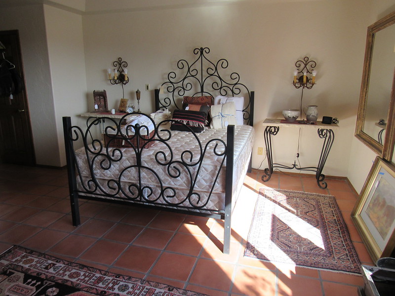 Hand carved folk art wooden dragon, large metal cross/crucifix, 1550-1600 Italian northern carved decoration chest, large painting by Art Menchego, large painting by Marianne Miller, large Mexican folk wood retablo painting, painting squaw on board, antique crank butter churn, Brett Interiors leather sectional, Mexican folk art Armadillo, pair wrought iron end tables, Native American photos, large hand carved wall totem pole, wooden carved crucifix, Italian candelabra, half-moon wood Demi lune table, carved beaver totem, pair of cowboy wrist cuffs, antique 16th century style halberd renaissance spikes, antique wooden wedding dress chest, rare Native American pottery, St. Florian wood carved sculpture, Corinne and Gary pottery, Acoma pottery, Mexican bowls, Joseph BeGay animals alabaster, carved marble buffalos, handmade wool Persian rugs, large wood elephant from south India 67”H x 83”L x 40”D with stand, wrought iron glass to dining table, antique Louis Xlll-style arm chair, Asian apothecary chest, embroidered black and gold tapestry Burmese, 2 hand carved dining chairs, Nivia Gonzalez on canvas, large oak server, folk art mask, antique grandfather clock, southwest sofa, tin wall mirror, art by Matt Chalom, Coral Grigg art, 2 twin beds, washstand, antique turning table with marble top, card tables, sand painted lamp, full bed, beddings, sheets, towels, pillows, rugs, tall green painted cabinet, quilts, painting by Dorothy Gaines, wrought iron patio table with 6 chairs, ladders, power washer, leather sofa, pair of glass top wrought iron end tables, Samsung TV, pair of black chairs, antique oak library/dining table, painting on board by Kendall, 2 quick sketch by Nick Pitl, pair of silver plated Cambodia elephants, old crocks, 3 gallon Elm leaves crock, old wood trunk, wood carved folk art WuTa, carbide lamps, lanterns, drivers headlight helmet, little Indian figures by Elastolin toys, Native American basket, Hopi basket, Bose speakers, North western moveable mask folk, Coral Baechle oil on pastel, Jose Reanda painting, art by Norman Native American, vintage leather chaps, “buffalo medicine” hide painted by Woody Richard, full, small writing table, frames, Harley Davidson lamp, antique wardrobe, pots and pans, kitchen small appliances, Mexican glasses, Talavera plates, white dishes, baking dish, utensils, pine primitive dining round table, 5 wrought iron chairs, Jim Yellowhawk “Moving Camp” art, large Talavera ginger jar, 1998 Harley Davidson RS motorcycle AS-IS, 2006 Harley Davidson AS-IS and so much more!