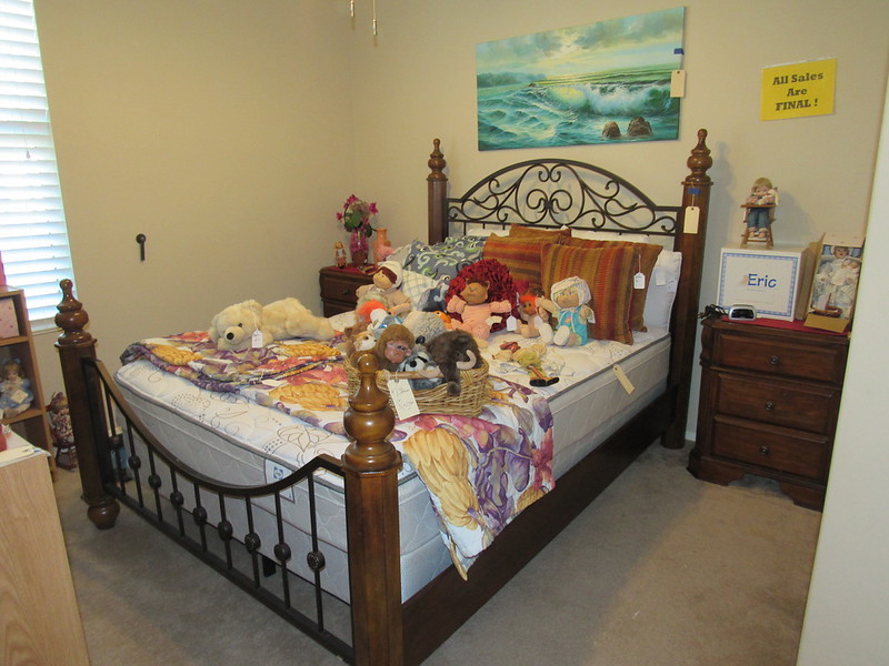 A very nice sectional, coffee table with matching end tables, antique oval coffee table, blue and white vases, small roll top desk with chair, clock, bookends, jewelry, treadmill, assorted pictures and paintings, RCA TV with remote, Samsung monitor, Magnavox DVD/VHS player, Kenmore sewing machine, Singer sewing cabinet, Emerson TV/DVD player, keyboards, Dell monitor, HP W2408 rotating monitor, Naxa radio, Kodak printer, computer speakers, Epson XP-4100 printer, red sofa and love seat, 2 shelves, carved settee, coffee table with matching end tables and desk, baskets, oil lamps, 1978 Disney glasses, TV stand/fireplace, red recliner, grey recliner, clocks, barstools, bar height table, placemats, assorted kitchenware including pitcher, baking dish, Corelle, coffee maker, toaster, Keurig, Copper Chef, Escali scale, flatware, pots and pans, Elite Gourmet crock pot, bowls, Oster oven, salt and pepper, Popcorn maker, TV trays, rice maker, Vita-Mix, Staffordshire Engravings “bird of Paradise”, utensils, vases, paper cutter, corner shelf, sofa table, blue and white décor, curio, King headboard and footboard with rails and mattress, nightstand, jewelry box, bookshelves, antique dresser, sofa, books, small fireplace, pair of Schafer Vater Jasperwave plaques, a nice selection of linens including pillowcases, sheets, runners, tablecloths and blankets, mirrors, rack, office chair, weights, screen, canes, belts, suitcases, men’s clothes size XL, women’s clothes size M-L and shoes size 9, Queen metal headboard and footboard with rails, nightstands, chest with key, settee, shelves, sewing supplies, purses, baskets, London fog coat, dolls, stuffed animals, queen wood/metal headboard and footboard with rails and mattress, pair of nightstands, cabbage patch dolls, dresses, pillows, 2 patio tables with 4 chairs, firepit, shower chair, exercise bike, ironing board, folding table, Christmas décor, yard tools, walkers, totes, ladder, wheelchair, cleaning products, tools, cords and so much more!